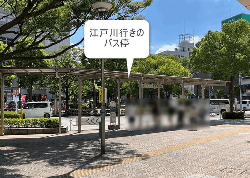 江戸川競艇場の正面入り口を出て、右手に行くと都営新宿線【船堀駅】に行くバス停があります。